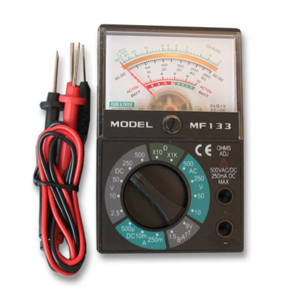 Basic analog multimeter for home, office, and educational use.MF133 Personal Multimeter