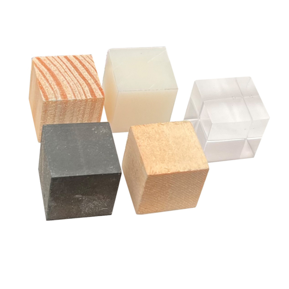 This set of 5 non-metal cubes is an essential tool for exploring and comparing the density and physical properties of different materials. Each cube, made from unique materials like rubber, acrylic, plastic, softwood, and hardwood, measures 20mm. Ideal for educational purposes in physical science and material studies.