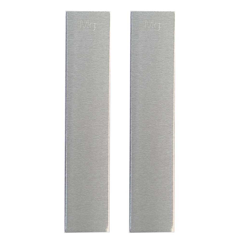 magnesium electrode, marked with the letter Mg, and designed for various applications. Its dimensions are 24.5 mm (approximately 1 inches) by 125 mm (approximately 5 inches) by 1 mm (approximately 0.04 inches). Each electrode is protected by a plastic film, which guarantees its integrity and optimal performance until it's ready for use.
